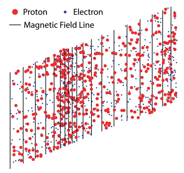 Nature abhors a vacuum and the seemingly empty space in our solar system between the planets is filled with particles that have blown off of the sun, called the solar wind (Figure 1). Now it is true that there are a lot fewer particles in space than in air. Here on the ground, each cubic centimetre of air (about the size of a sugar cube) contains around 25,000,000,000,000,000,000 molecules. In contrast, in the solar wind, on average you’ll find just five protons in the same volume - almost completely empty in comparison, but not quite.