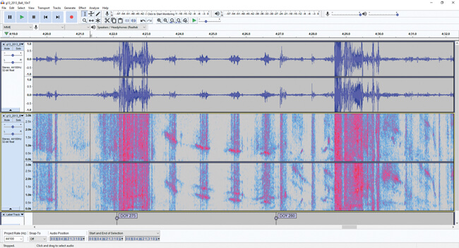 Figure 4: View in Audacity audio software of solar storm sounds found by
