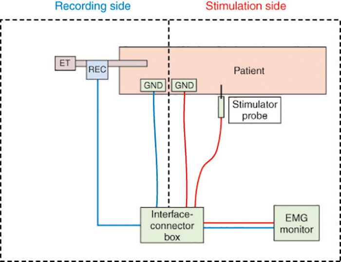 ET: endotracheal tube; REC: recording electrodes; GND: ground electrodes; EMG: electromyography.