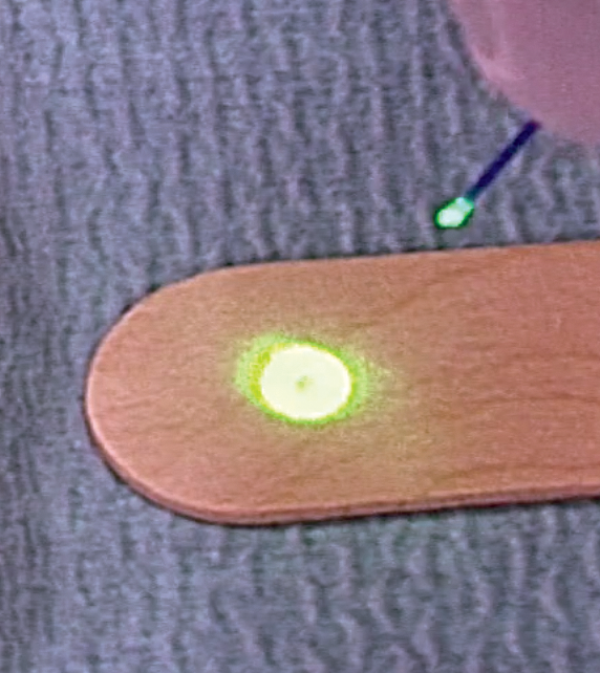 Figure 4A: Tip of fibre broken. Scattered pilot light beam.