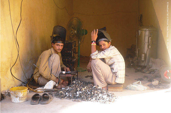 Outsourcing manufacture to developing countries can help boost income in local economies and support development, but outsourcing often seeks the lowest price, risking exploitation of workers and abuse of labour rights. Due to competition and consumer demand for low-cost products, much of the initial production of instruments in Pakistan is outsourced to smaller backstreet units, where there is little regulation of employment practices. Within these units the working environment is often poor, and wages and safety standards inadequate.
