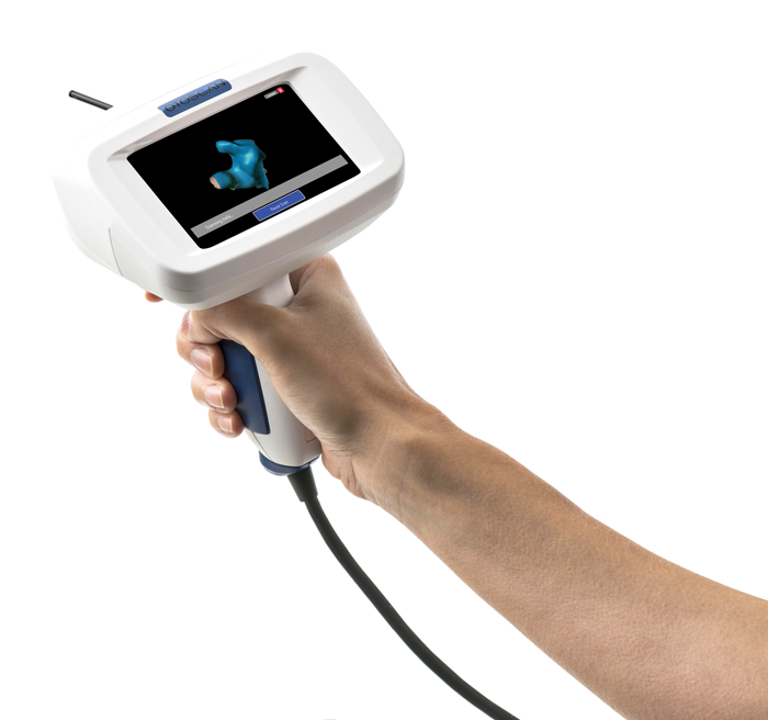 The OTOSCAN is a complete earscanning solution consisting of a handheld scanner, laptop computer, patient worn tracking headset, and web-based ordering portal designed to replace the current silicone impression process.