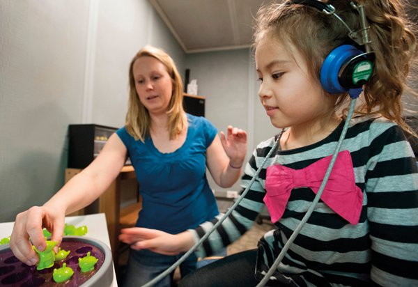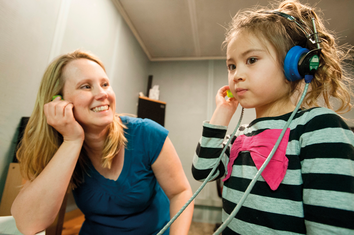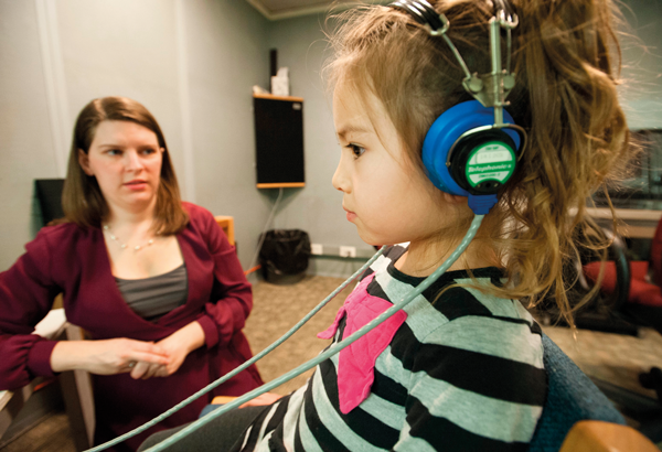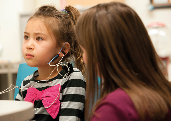 Figure 1. Probe-microphone verification is an important step in the process of fitting children with hearing aids. Measurements of the hearing aid in the child’s ear or in a coupler with the child’s real-ear-to-coupler-difference allow quantification of speech audibility.
