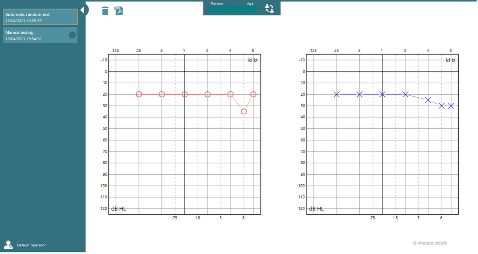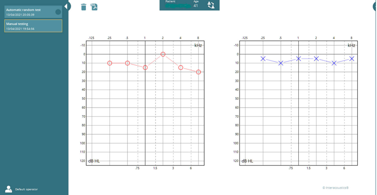 Automatic Random Test mode was run and the difference in the high frequencies recorded was noticeable considering that only one response is required to store a result in the audiogram. As a screening tool, the Luna performed quickly with randomisation ensuring attention was maintained, however it needs a trained audiologist to be present while the test runs. One difficulty here is that there is no indicator to signal the presentation tone, you are relying purely on patient response.