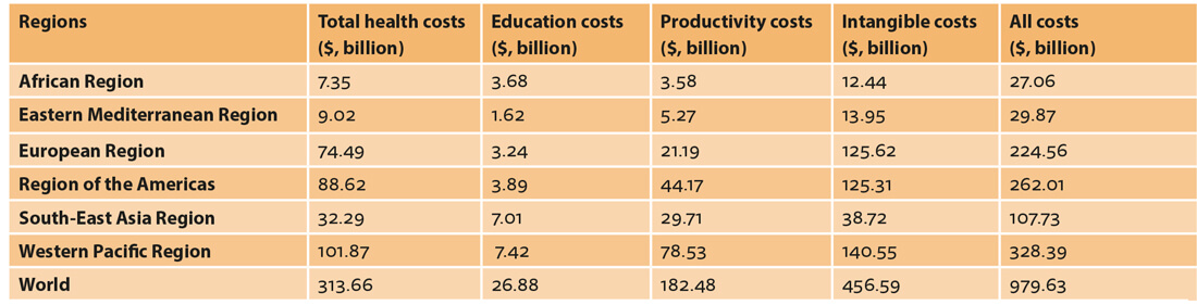 Table 1. Costs of unaddressed hearing loss, according to WHO regions.