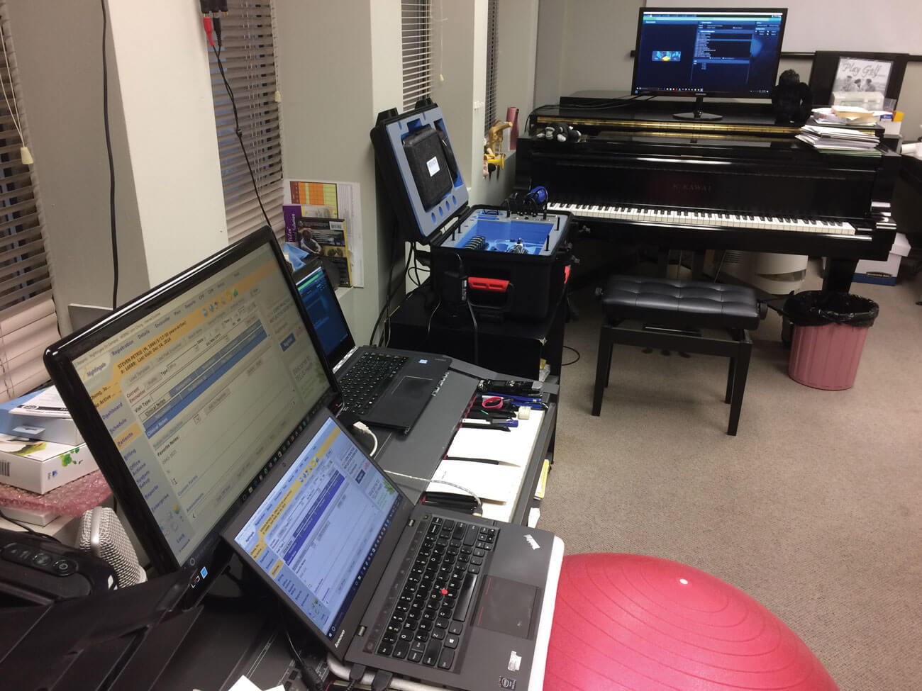 Marshall’s clinic - complete with the piano he uses in a 30-second test to quickly identify cochlear dead regions.