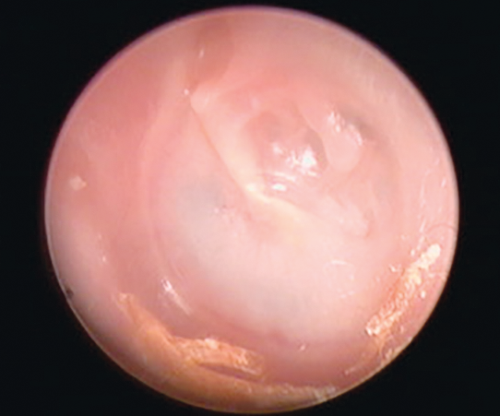tympanic membrane with a suspicion of early ossicular erosion.