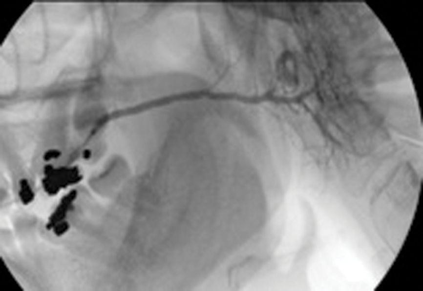 Figure 4: (B) Appearance on sialogram following balloon dilatation.