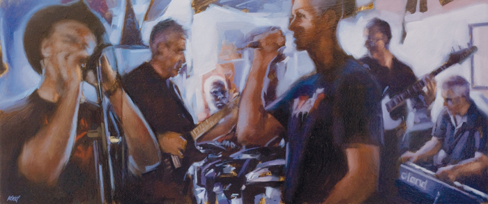 A painting by local artist Alan Flood of Dave Starachan’s former band, Black Dog Blues.