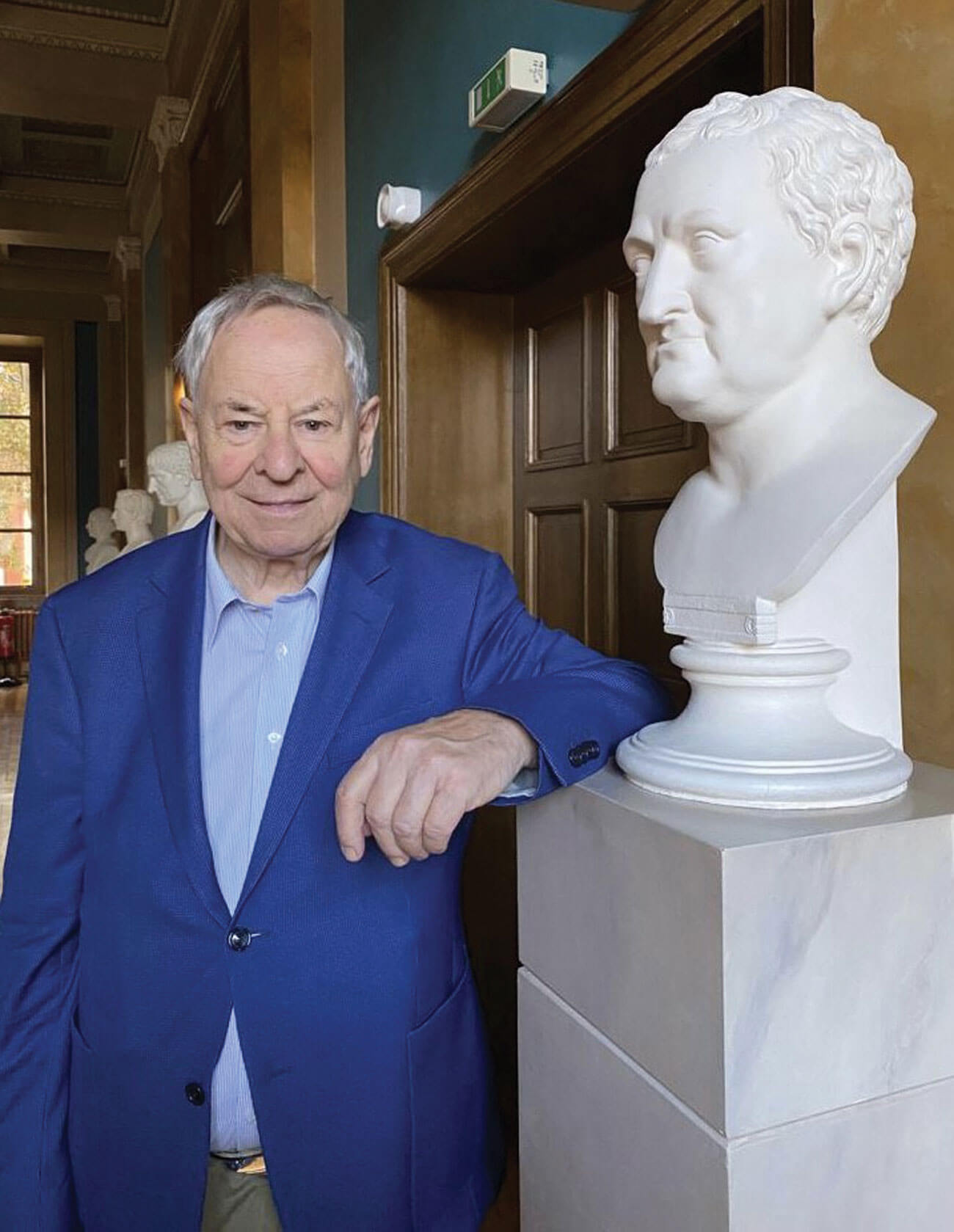 Prof Wolfgang Steiner next to the bust of Albrecht von Haller.