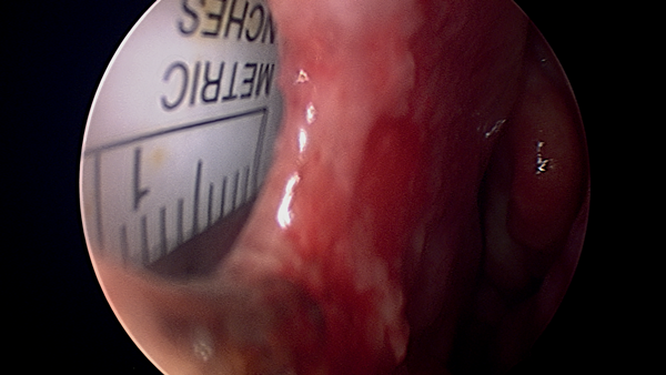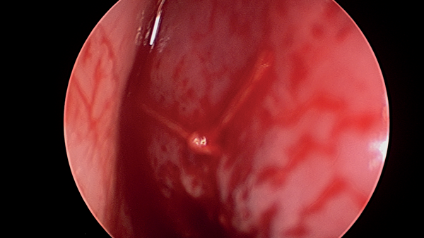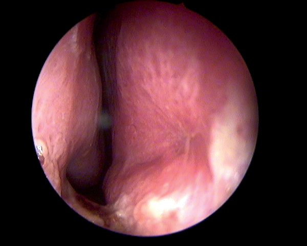 A thorough endoscopic examination of the nose is done to remove any synechae or reduce hypertrophied inferior turbinates to allow access. The size of the perforation is assessed (Figure 1).