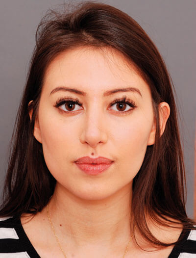 - Naturally shaped dorsum with over-projection (tension nose), midline septum.