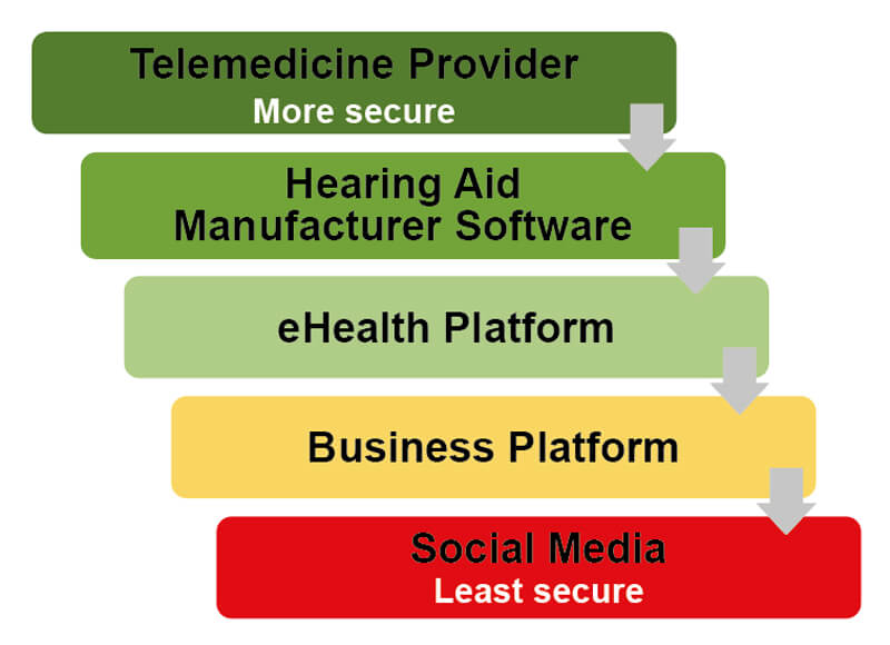 Ask for help. There are several trustworthy resources who share the responsibility of patient data security. Your professional regulatory body or college has a responsibility to protect the public and, as such, has current knowledge of relevant legislation. Developers of software solutions can provide information regarding the security of their product. Hearing aid manufacturers with remote options built into their software share a significant part of the responsibility for data security and can assist in appropriate use of their solutions.