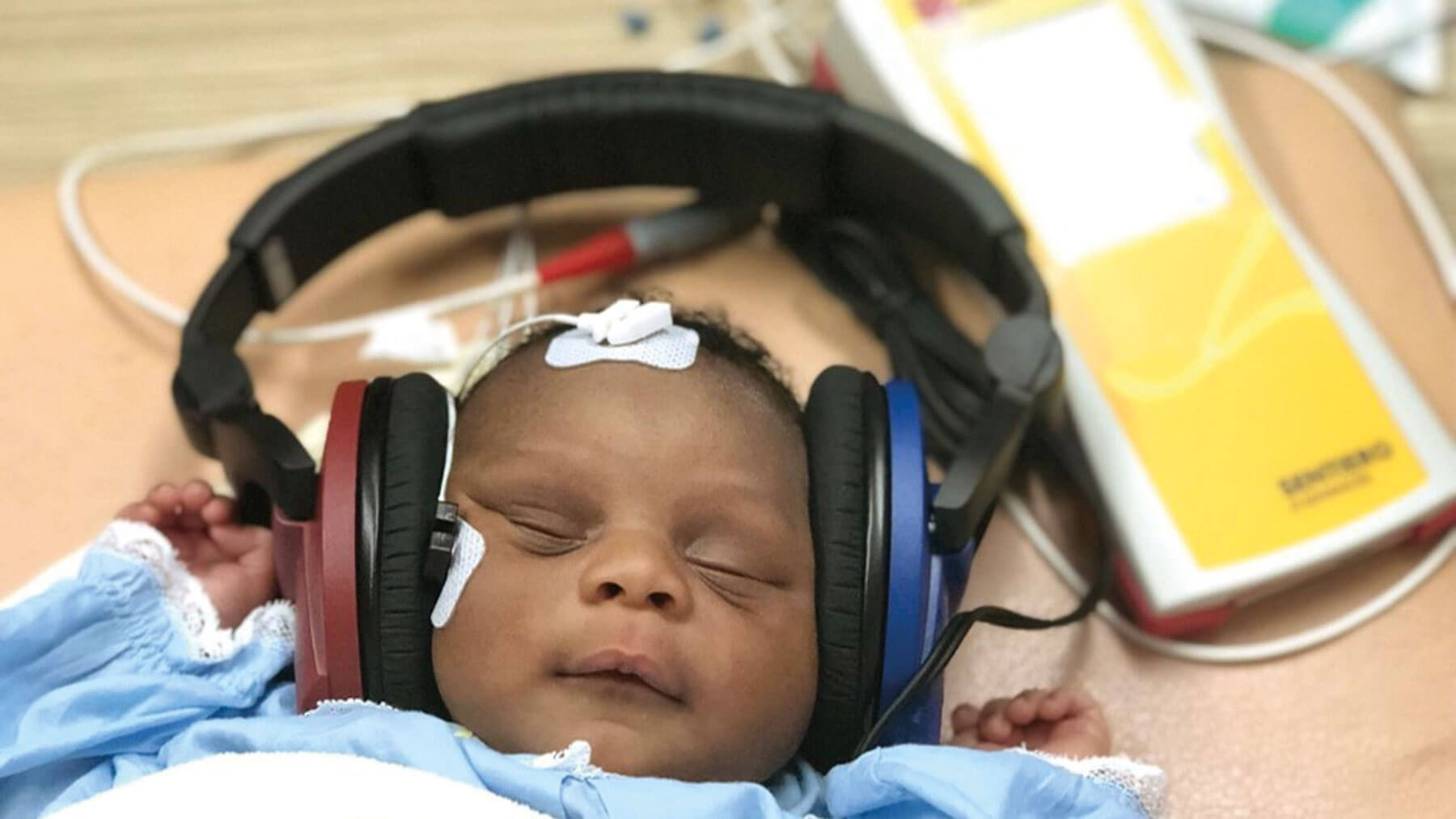 A baby being screened as part of the RCI new‑born hearing screening project.