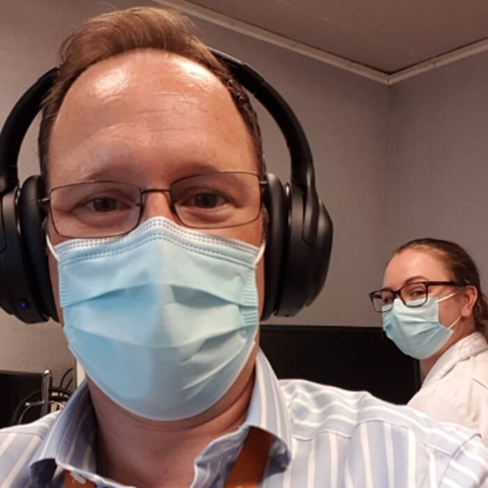 Gareth Smith and Kirsten Ellis sampling the PuroPro headphones.