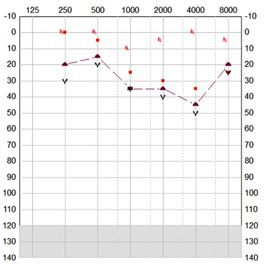 Soundfield audiogram showing the headphones under test conditions.
