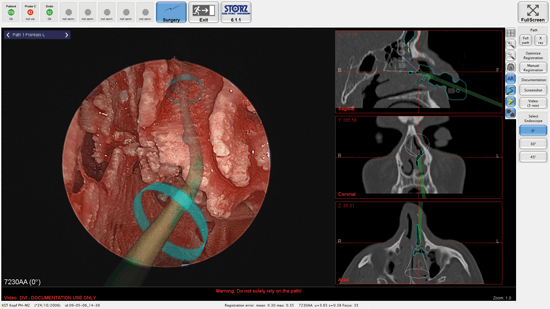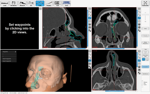 Figure 2. Preoperative planning of pathways to e.g. the frontal sinus on navigation devices.