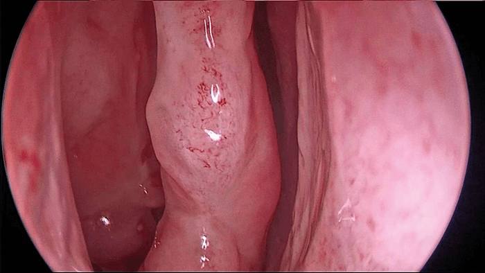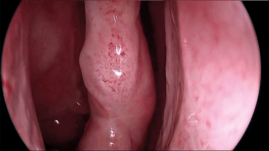 Figure 1a. View of the middle turbinate without contrast enhancement (KARL STORZ IMAGE1 S™).