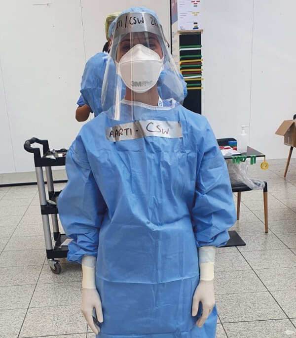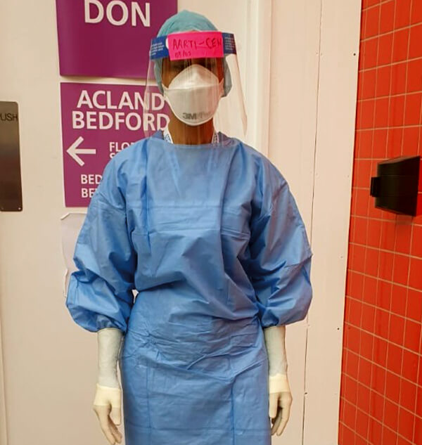 Aarti Makan donned in full XL PPE, ready for the night shift.