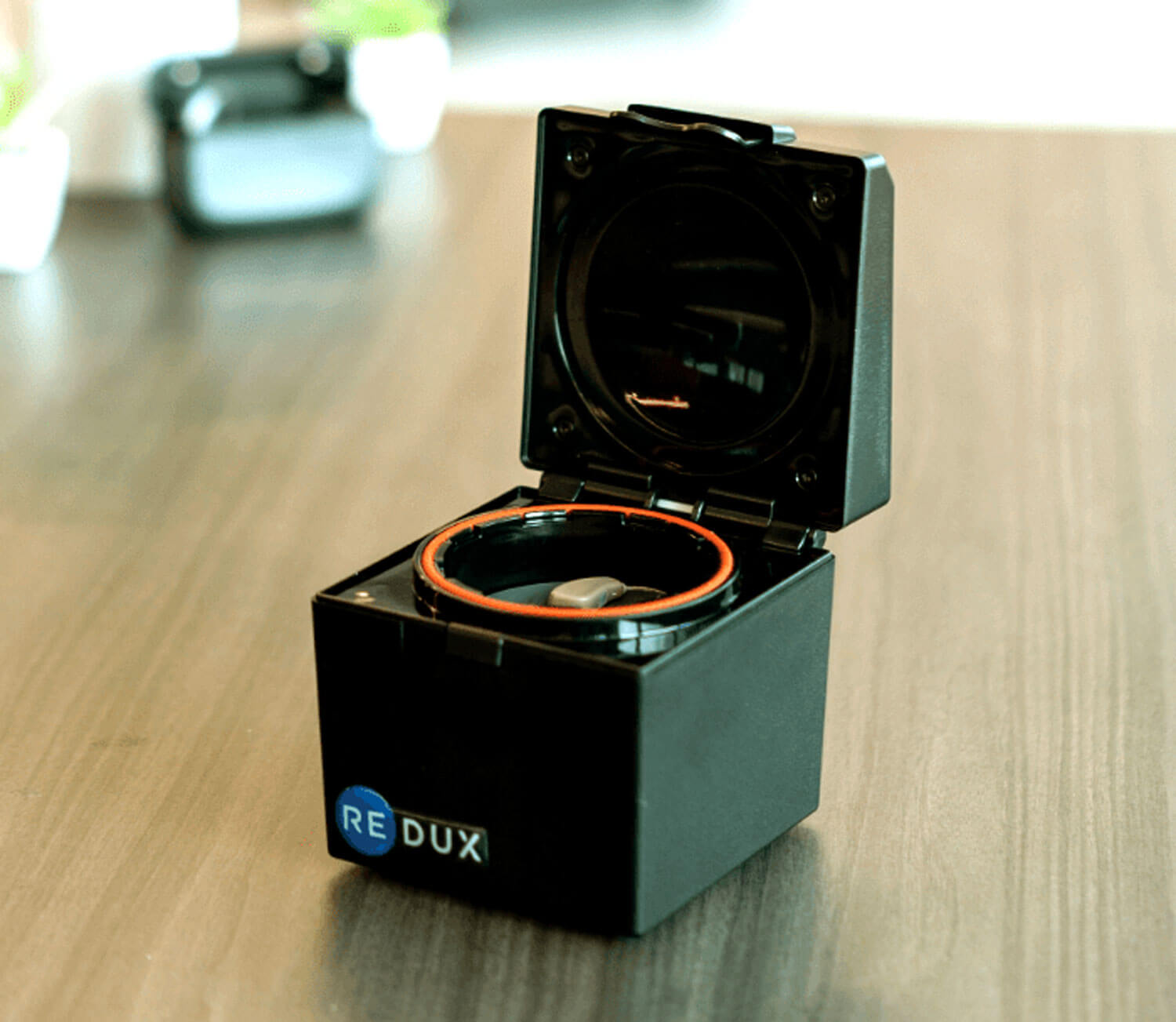 One benefit of Redux is that the clinician can measure real-time humidity levels in the hearing aids and can verify how much moisture has been removed. Without a moisture sensor, clinicians do not know the cause of ‘weak’ or ‘dead’ hearing aids and, more often than not, have to send the hearing aids to the manufacturer for repair. However, the moisture sensor in Redux shows clinicians the moisture content of the hearing aids so that they know the cause of the issue. With Redux, over time, clinicians would be able to identify patients who have frequent moisture issues and would be able to create patient-based care plans to better service their hearing aids. This would prevent permanent hearing aid damage and having to send the hearing aids repeatedly to the manufacturer for repair.