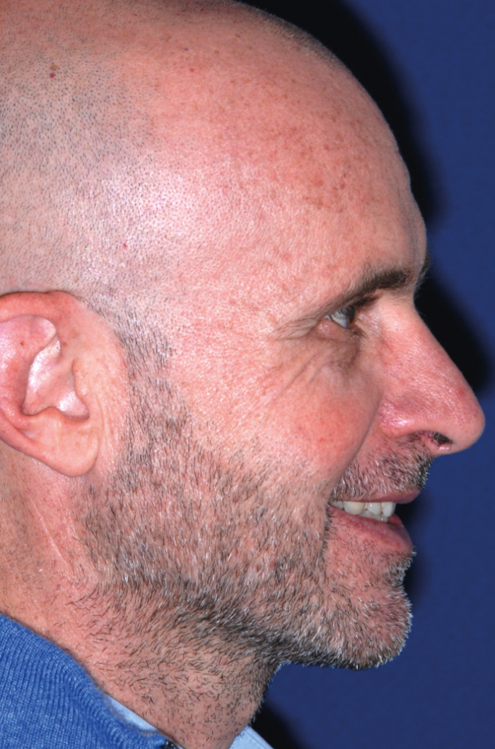 Side view. Preoperative (left) and postoperative (right) show the aesthetical repositioning of the critical contour