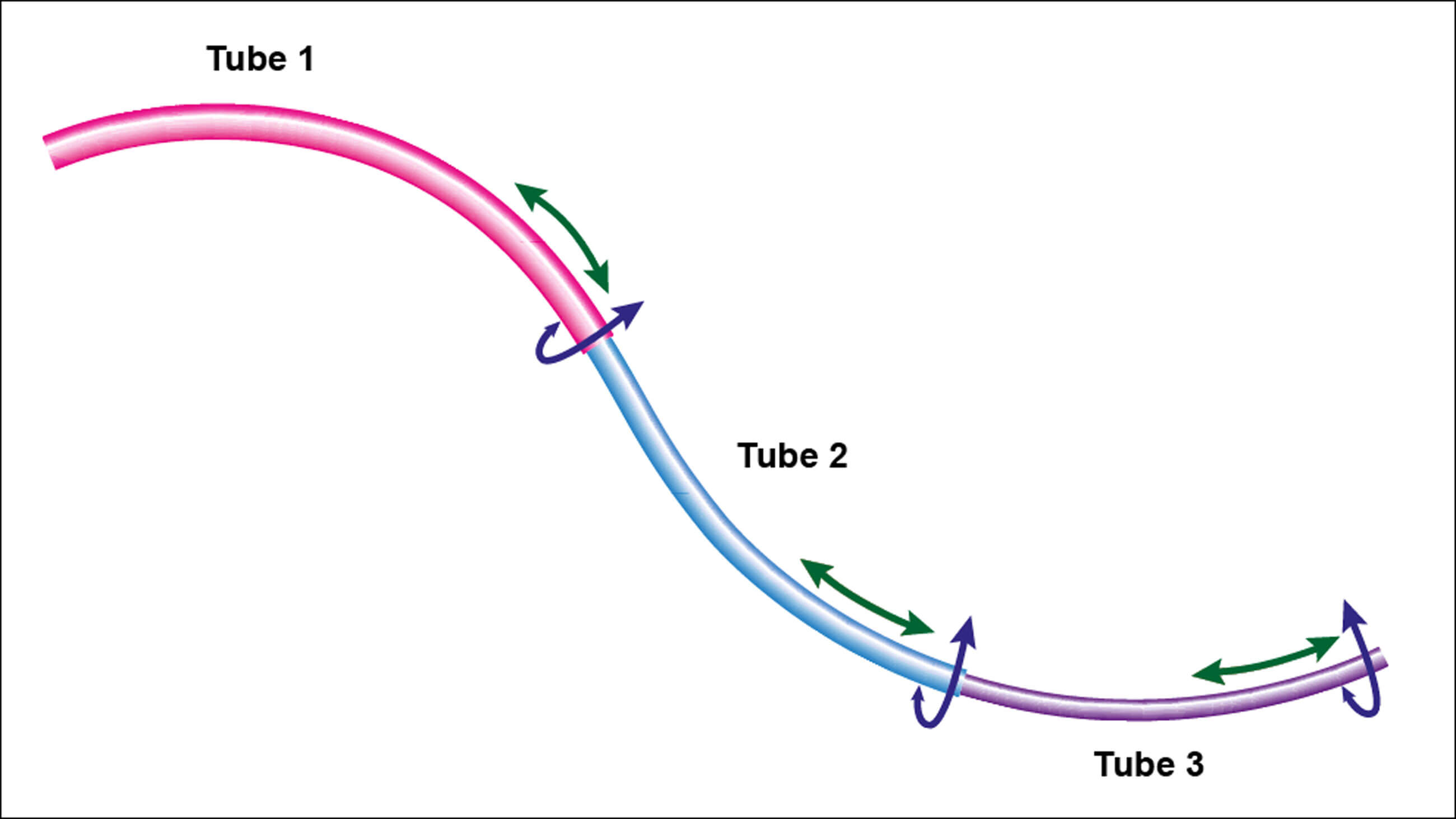 Continuum tubular robot (CTR) distal end with three tubes that can be rotated and translated relative to one another.