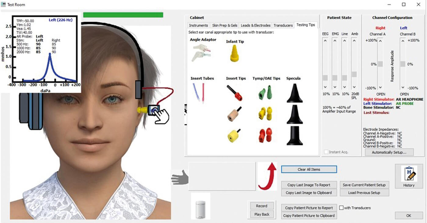 It was from this experience that the Smart Virtual-Simulator (SmartVS™) was born. SmartVS™ is a comprehensive simulation software package used to train audiology students and allows programmes to deliver a standardised training experience with a comprehensive set of clinical examples [3]. SmartVS™ provides a realistic clinical environment where students learn to use various instruments, including transducer selection and placement, on a virtual patient (see Figure 1).