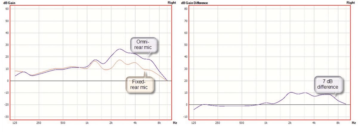 Measurement of live voice difference with directional microphone, within freestyle screen, in Gain View.