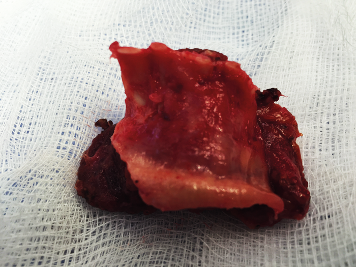 Figure 3. Tracheal resection in a case of intraluminal invasion by a papillary thyroid cancer.
