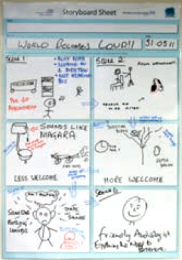 Story boards developed in the workshops with hearing aid users.