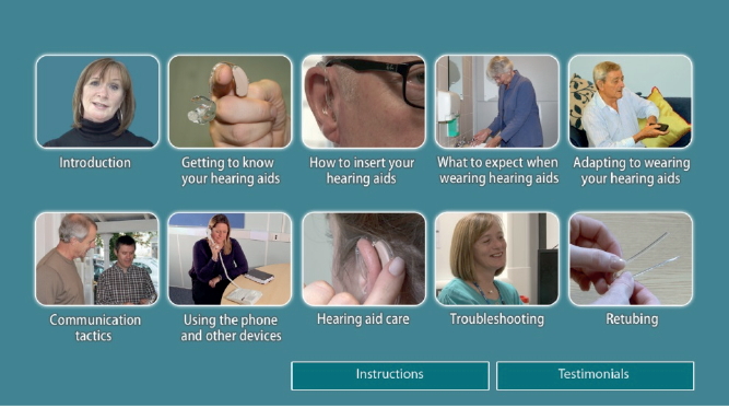 RLOs were designed primarily for home delivery using DVD players because PC and internet use in the typical first-time hearing aid user age range (70-74 years) is relatively low (36% and 17% respectively) [8]. For the more IT-literate, there was the option to play the DVD through a PC or access the RLOs through the Nottingham Hearing Biomedical Research Unit internet portal.