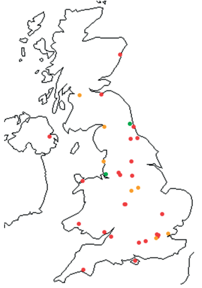 Figure 1. Sites around UK that are currently involved with the AIR-RRP registry.