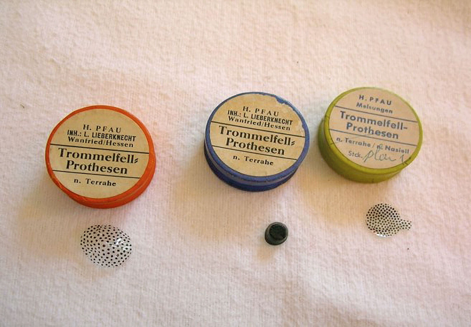 In the pre-antibiotic era, purulent otitis media often resulted in a permanent eardrum perforation with hearing loss. In addition to pig or fish bladders, eggshell membranes and cigarette paper were used as eardrum prostheses.