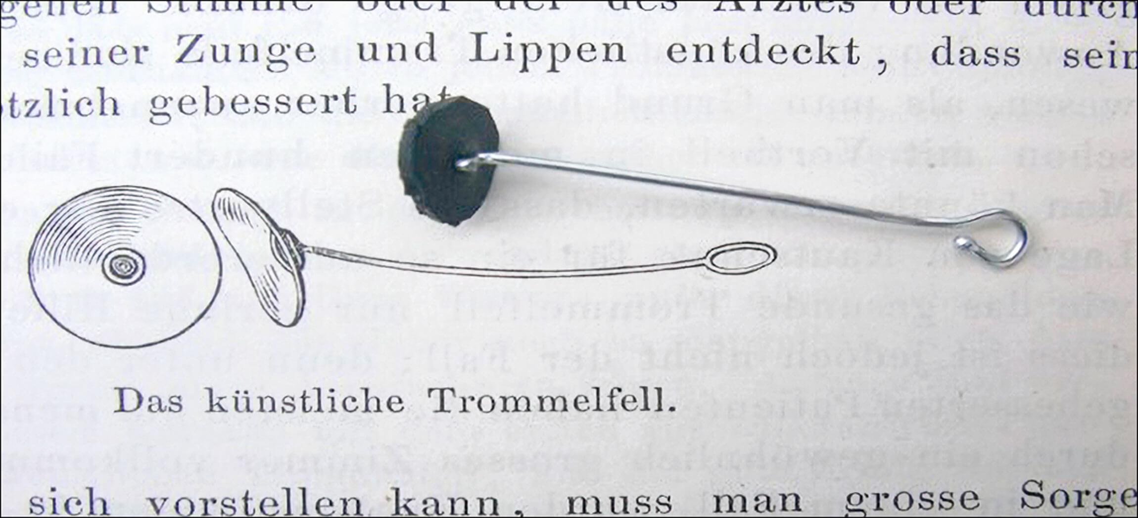 Graft materials had been used since 1853, when Toynbee used a rubber disc attached over a silver wire, which resulted in a hearing improvement when placed over a perforation. Although the surgical instrument manufacturer John Weiss produced 17,900 of these prostheses, they were never successful beyond the United Kingdom (Figure 1). This was probably because they had not yet received the seal of approval from the great teacher of our subject, Adam Politzer of Vienna. Also otology was not considered important in continental Europe at that time (the so-called ‘insignificance of otiartria’). The possibility of closing a tympanic perforation and at least achieving a temporary hearing gain, was widely ignored until the Vienna School accepted this operation (which had been known empirically for a long time). It then became widely used.