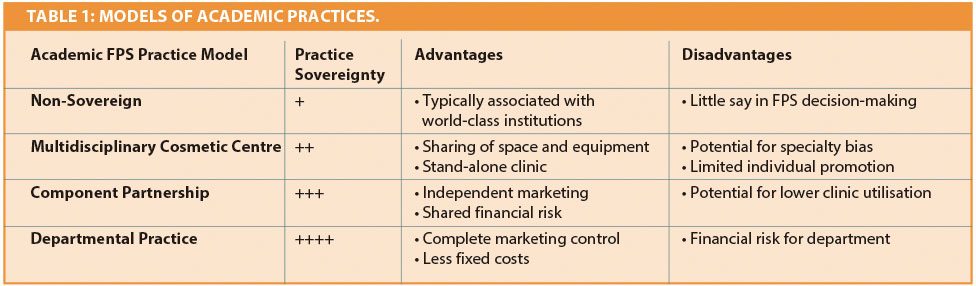 There are also many disadvantages inherent to an academic FPS practice. In the USA, decreasing insurance reimbursement, decreasing governmental support, a highly competitive private sector and the unknowns of the Affordable Care Act have led hospital administrators to be more conservative with resources than they were 20 years ago[3, 4]. There are high fixed costs of operating at university hospitals, which necessitates lowering the academic physician’s portion of a cosmetic fee to remain competitive with community prices. High operational costs and decreasing profits lead to an overriding theme of communal space in the decision-making mindset of the university administration. In turn, this leads to a perception in the community, real or imagined, of non-personalised delivery of care. Complicated automated phone systems, large facilities, difficult parking and variable staff encounters contribute to an unwelcoming experience. Although sharing support staff and clinic space maximises utilisation, it is observed as impersonal to the consumer.