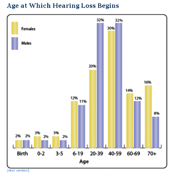 Figure 1. Age at which people first begin to notice their hearing loss [2].