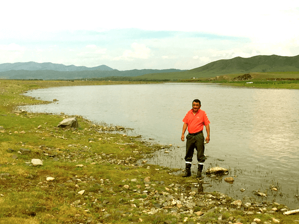 Tomro, Büregkhangai Hospital’s sole paramedic, stopping by a stream in Bulgan Province.