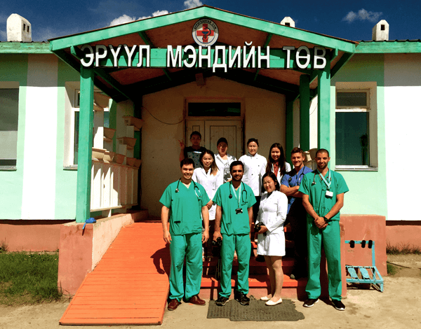 Students and hospital staff in Büregkhangai, Bulgan Province.