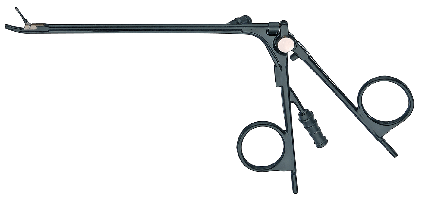 STAMMBERGER Bipolar Suction Forceps, 45° upturned, with suction channel, for bipolar coagulation in paranasal areas.