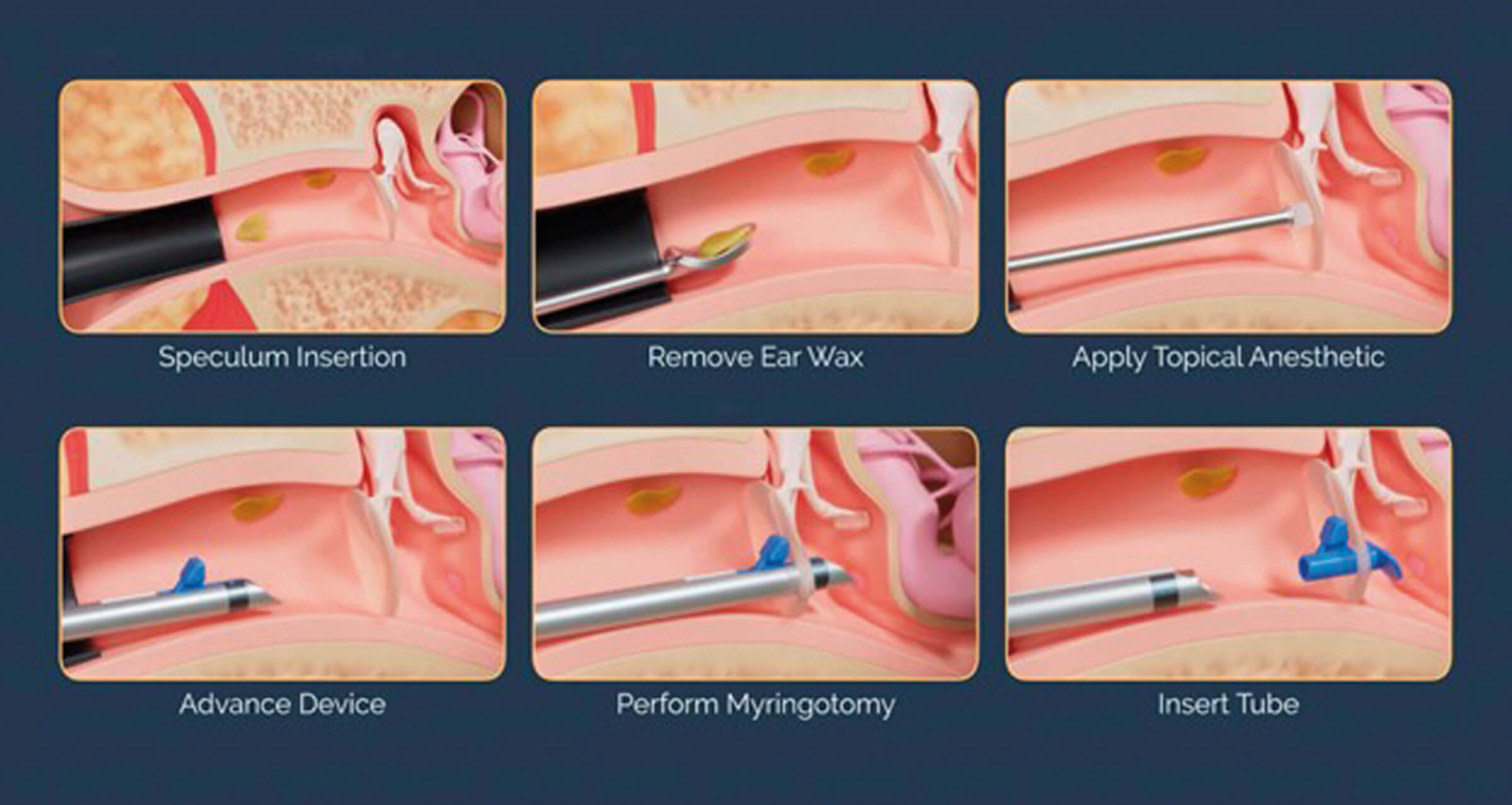 For OR-based ear tube procedures, middle ear fluid is usually suctioned prior to ear tube placement. Given that this can be loud and uncomfortable for an awake child, we avoid this if possible. In the initial clinical study performed at the Mayo Clinic, no issues were observed with blocked tubes or residual fluid despite rarely suctioning the ears [2].