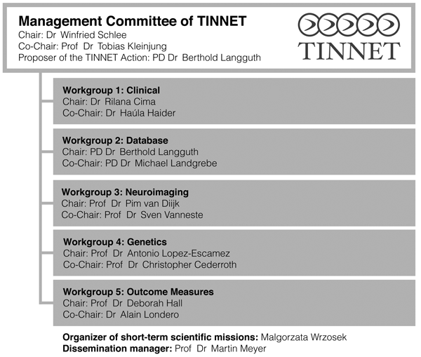 The global aim of the TINNET COST Action is the creation of a pan-European network to identify pathophysiologically and clinically meaningful subtypes of tinnitus together with their neurobiological and genetic underpinnings. This will be facilitated by standards for clinical assessment and outcome measurement, by large-scale multi-centre data assessment and by data management in a quality controlled database. Furthermore, the clinical data will be complemented by neuroimaging and by the search for genetic markers. The data analysis concentrates on the identification of meaningful tinnitus subtypes with the goal to improve the scientific understanding of the tinnitus heterogeneity and develop new treatments for tinnitus.