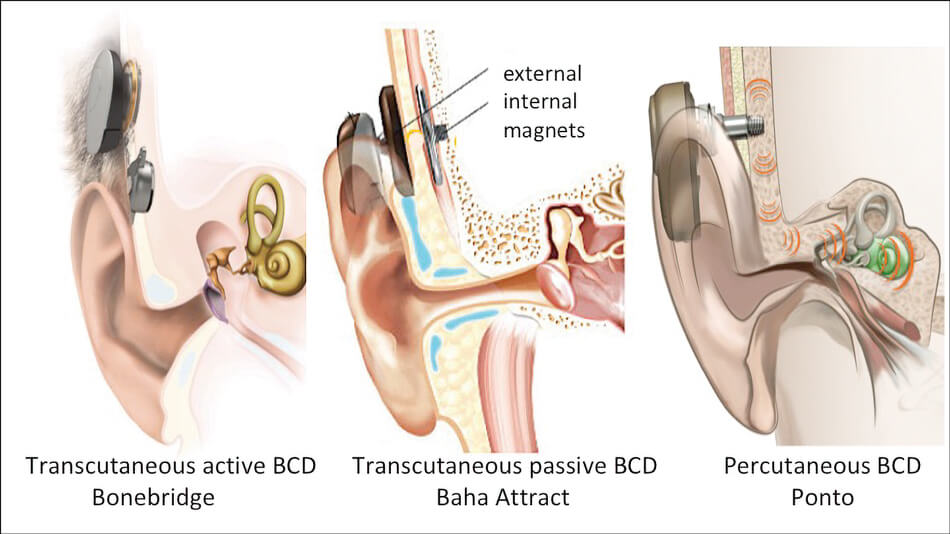 Figure 1. Examples of three different types of BCD. Images provided by Oticon Medical, Askim,