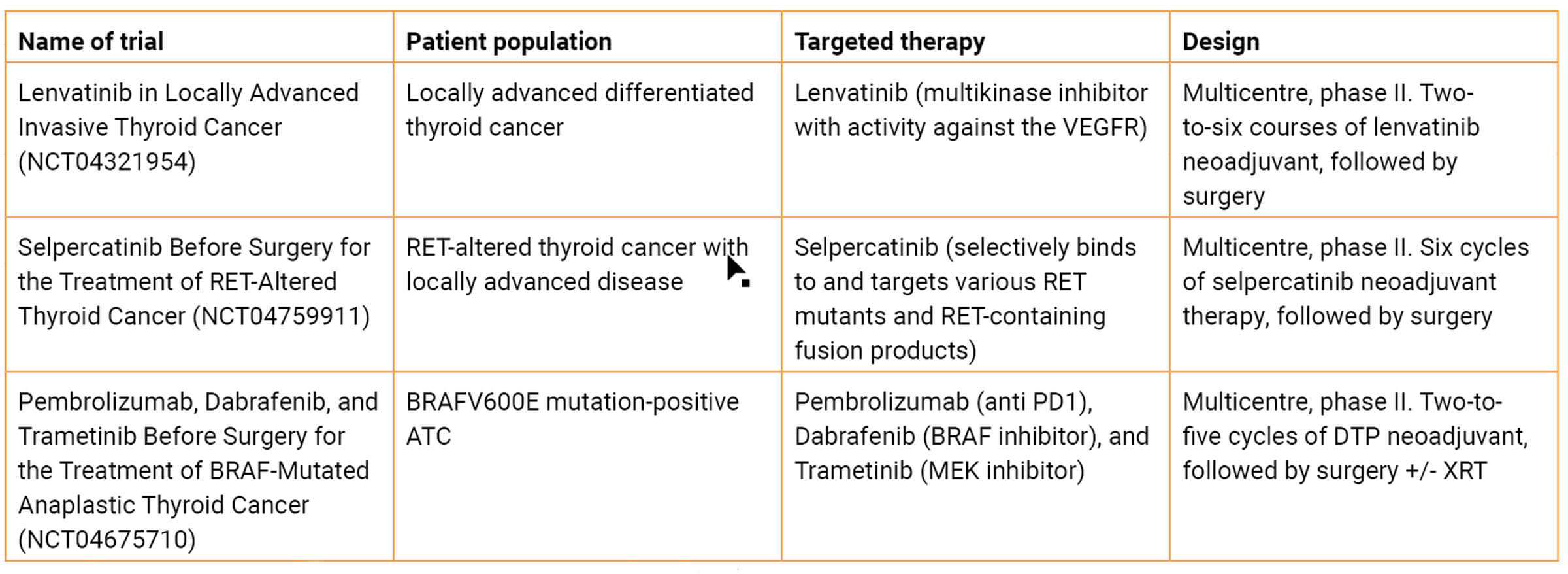 Locally advanced thyroid disease: current neoadjuvant targeted therapy clinical trials