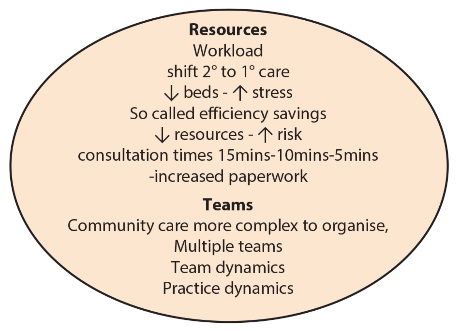 Other factors that have made the working environment more stressful include the move away from the traditional firm structure to team working. In the firm structure there was a clear focus of authority which was located in the consultant so there was a clarity of what was expected in terms of clinical practice and procedures in respect of the firm and the juniors in that firm. However, this had disadvantages if you were a trainee with a particularly autocratic consultant or consultant that you just felt uncomfortable with. The rapid dissolution of that system into team working has generated considerable problems. This is due in part to successive reorganisations and rapid changes where firms or departments or even departments in different hospitals have been rapidly thrown together and expected to function well.