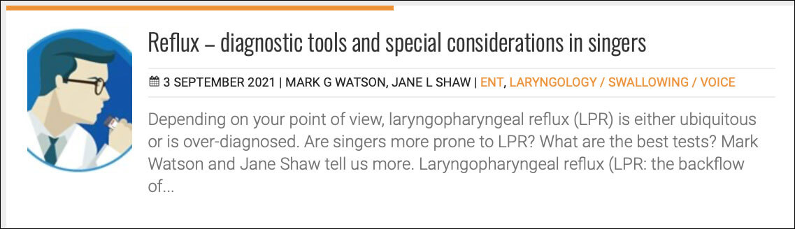 Perhaps I should point out some obvious differences between your routine dysphonia patient and the international soprano with mounting concern over a perceived change in her voice and the catastrophising that occasionally comes with it? With so many aspects that need to be considered when treating singers, and especially those that make their living from their voice, I will simply start with this: treating the professional singer can be interesting.