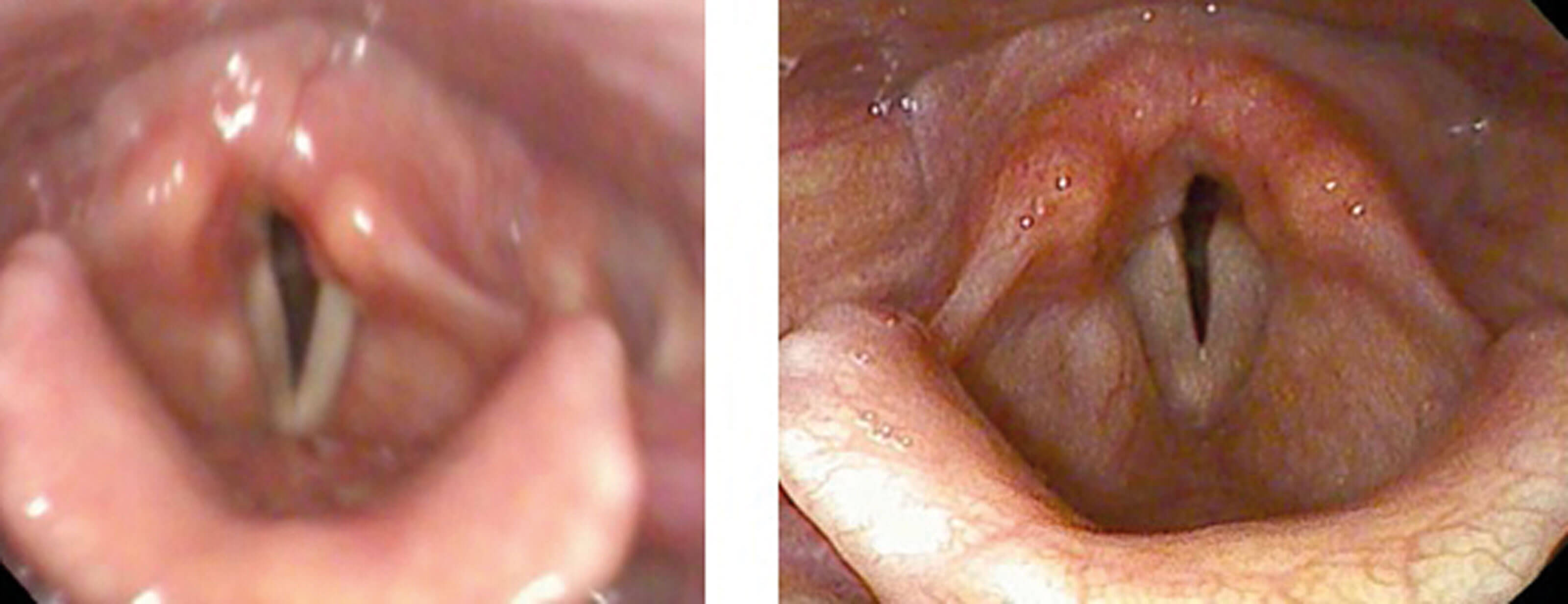 Figure 4: Pre and postoperative outcomes for an immobile left vocal cord.