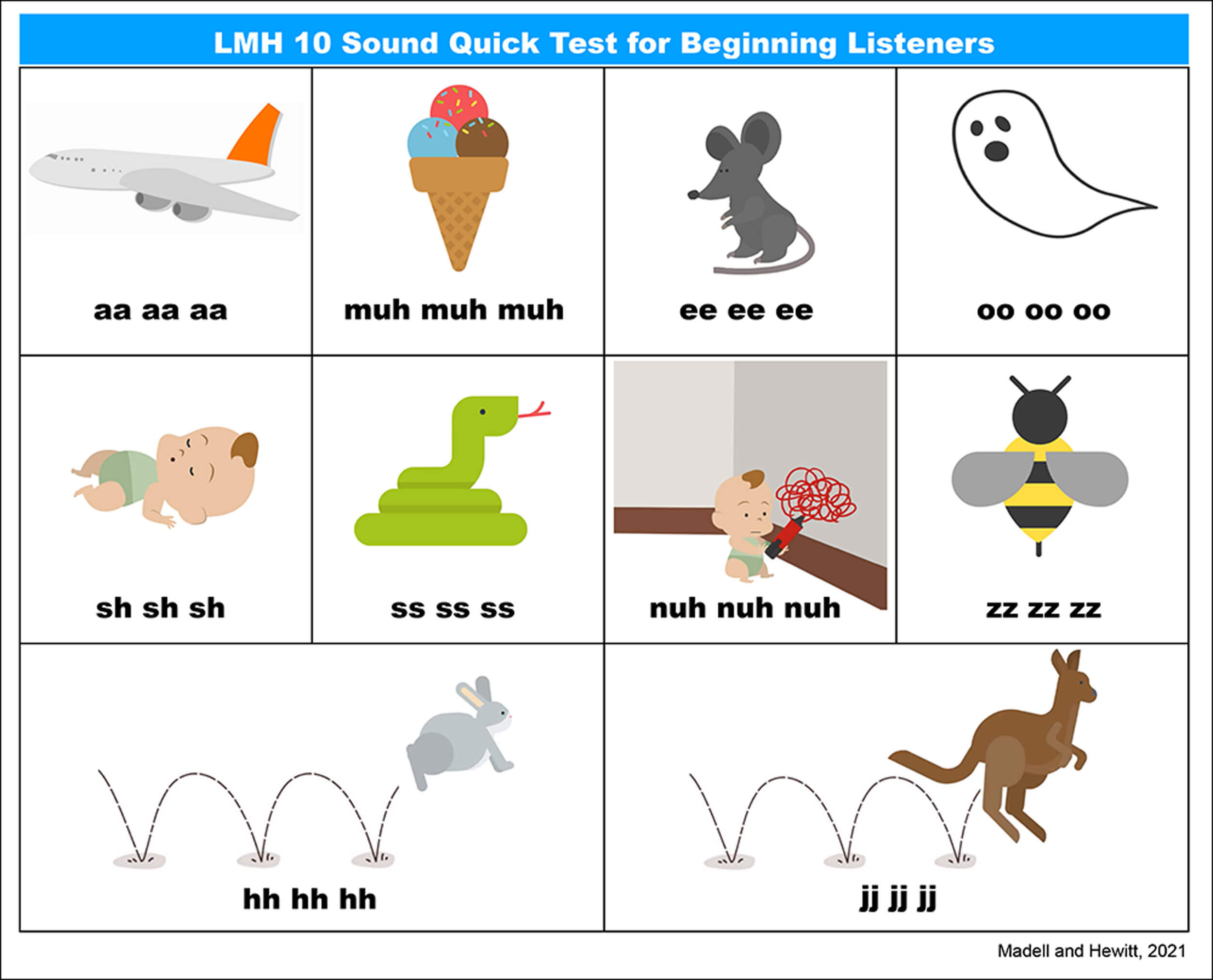 3. Madell J, Hewitt J. The Ling Madell Hewitt Test Battery. Volta Voices 2022.