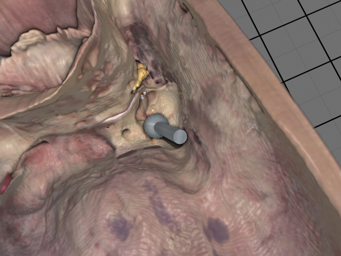 In 2009 the first version of VES was released and since then the simulator has been translated to several languages and is used all over the world. In many places the access to cadaver heads, for temporal bone drilling is limited. So the use of a virtual temporal bone has proven to be a good addition to the traditional wet training. However, VES was limited in terms of visible quality and the resolution of the temporal bone was not as high as desired. Therefore we have continued to develop VES2 and we are very proud to announce the release of what we think is a really good simulator in terms of look and feel. To our knowledge this is the only simulator that features the true colours of the middle and inner ear.
