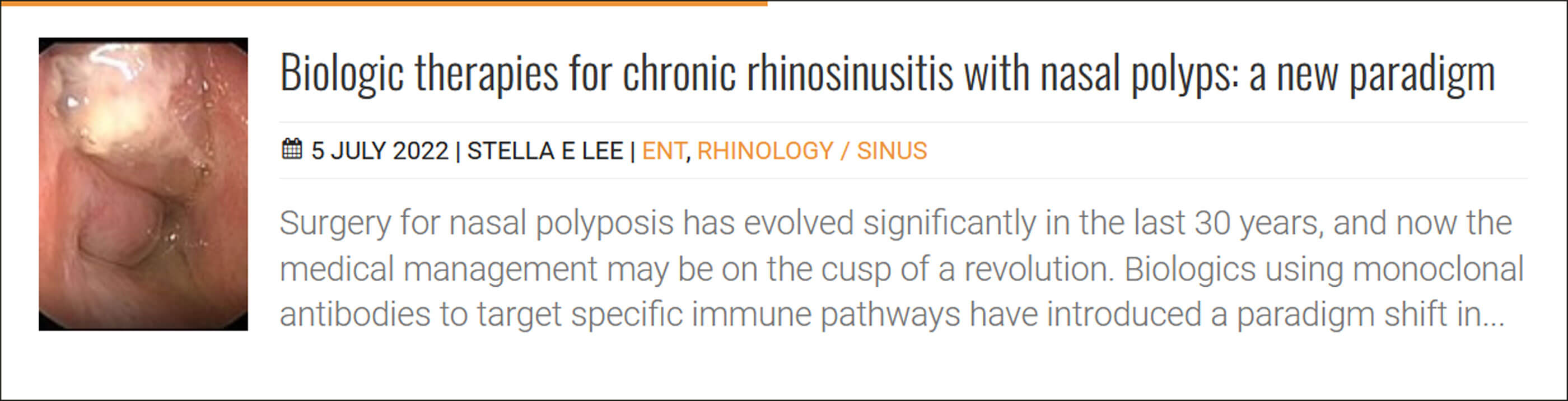 At each conference, I aim to make sure I find at least one thing that will change my practice when I get home - we work in a rapidly evolving specialty and there are so many new technologies and advances in medical therapies, that it’s impossible to keep up with the evidence base. Meetings are the perfect opportunity to catch up. One of my favourite short paper presentations enhanced my practice in such a simple way - polypoid oedema of the middle turbinate is an excellent marker of inhalant allergy, with 95% specificity [1]. It’s the crystal ball of rhinology - I look in the nose and can declare ‘you have allergies’, almost without needing the confirmatory skin prick test. Genius. I’d probably never had read the paper but sitting in the lecture room, it really grabbed my attention.