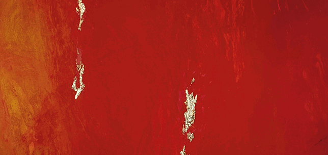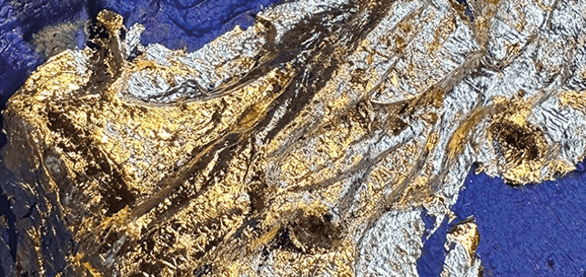 A close-up of the gold leaf - one of my signature elements. Golden ridges built up with medium, covered with a delicate layer of gold.